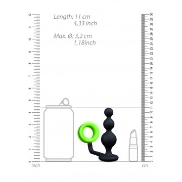 Anello fallico con plug Beads Butt Plug with Cock Ring - GitD - Neon Green/Black