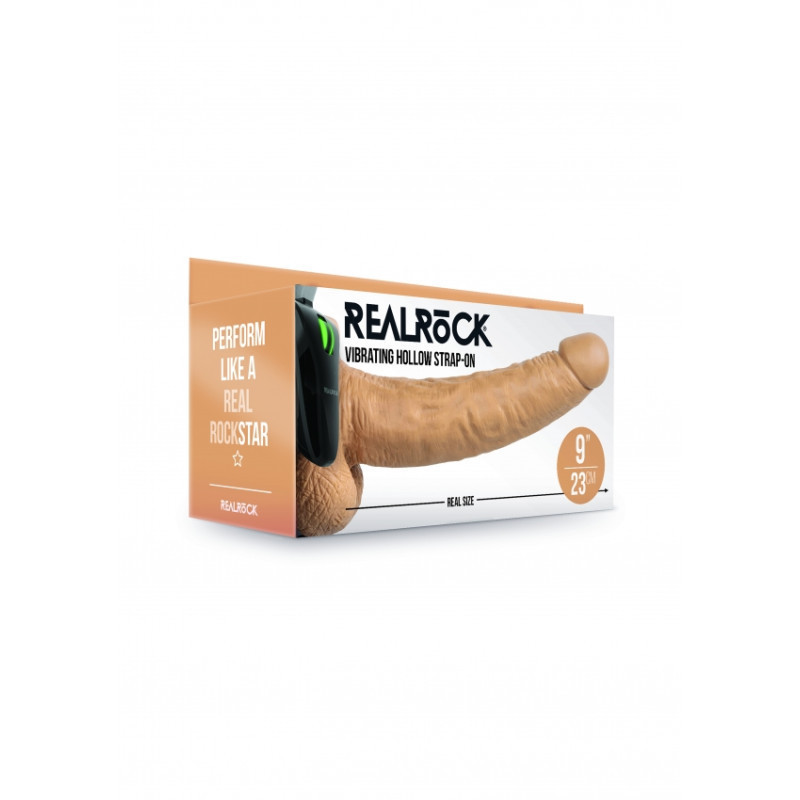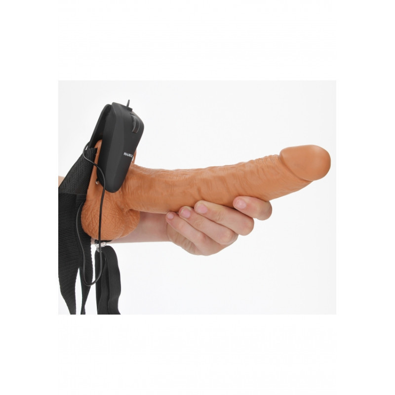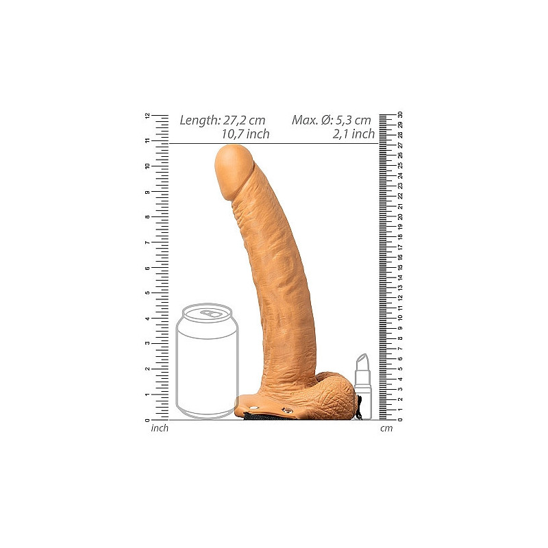 Vibratore cavo indossabile Vibrating Hollow Strap-on with Balls - 9'' / 23 cm - Tan
