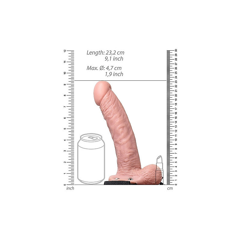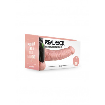 Vibratore cavo indossabile Vibrating Hollow Strap-on with Balls - 7'' / 18 cm - Flesh