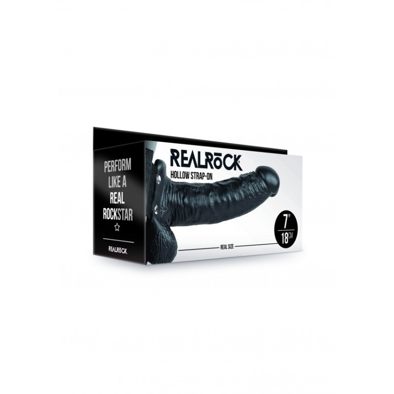 Fallo cavo indossabile Hollow Strap-on with Balls - 7'' / 18 cm - Black