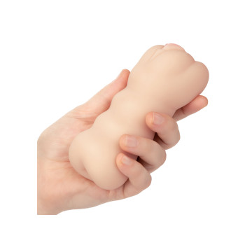 Lasciatevi andare alla fantasia di una vita con l'accarezzatore per masturbazione Cheap Thrills The Three Way. Il design eccitante a doppia estremità consente di giocare davanti o dietro la porta. Una camera dalla texture unica e il materiale Pure Skin, ultra morbido ed elastico, avvolgono il vostro strumento con sensazioni simili a quelle della vita. Sia a casa che ovunque il piacere vi porti, il compatto 14,5 cm (5,75") è il compagno di viaggio che desiderate. Il pregiato Pure Skin non è profumato, non contiene ftalati e non richiede manutenzione, per risultati davvero esplosivi.