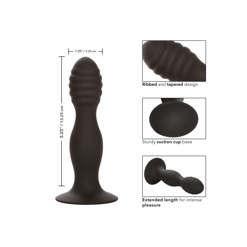 Dal timido principiante all'esperto di erotismo, il CalExotics Silicone Ribbed Anal Stud è in grado di eccitare tutti i cercatori di piacere della backdoor. La sonda in silicone, praticamente priva di cuciture, ha una punta a coste, una testa accentuata e una potente base a ventosa. Il corpo increspato e la punta a coste sono sicuri di colpire il punto giusto, ogni volta. La base flangiata è dotata di una robusta ventosa che può essere utilizzata con un'imbracatura o montata su una superficie piana per un sensazionale divertimento a mani libere. La sonda flessibile è realizzata in silicone liscio e senza cuciture. Il materiale sicuro per il corpo non è profumato e non contiene ftalati, per rendere felici e sani i punti più sensibili.