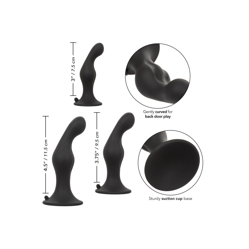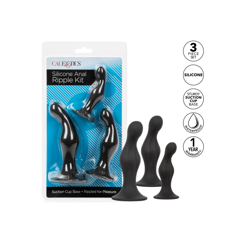 Apritevi a un mondo di eccitante piacere anale con il kit anale in silicone Ripple. Concedetevi un piacere da far tremare le ginocchia con il set di 3 misure graduate di plug anali delicatamente curvi con base a ventosa. Aumenta delicatamente il tuo piacere con il design naturalmente curvo che colpisce tutti i punti giusti e mantiene il comfort durante il gioco. Ogni sonda del nostro kit aumenta gradualmente in lunghezza e circonferenza per un piacere superbo a qualsiasi livello di gioco. Mentre ogni aumento del vostro allenamento espande i vostri orizzonti, utilizzate la comoda base a ventosa per una stimolazione vaporosa, un inserimento senza sforzo e una rimozione delicata. Le sonde flessibili sono realizzate in silicone Satin Finish, liscio e praticamente senza cuciture. Questo materiale sicuro per il corpo non è profumato e non contiene ftalati, per rendere felici e sani i vostri punti più sensibili.