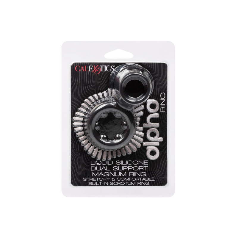Dai timidi principianti agli esperti dell'erotismo, l'Alpha Liquid Silicone Dual Magnum Ring vi avvolgerà nel piacere con questo anello potenziatore ultra felpato e ultra elastico. Il giocoso anello è realizzato in silicone liquido ultra elastico con un audace design a doppio anello. Questo anello per il cazzo, elastico e confortevole, è fatto per aumentare la resistenza, migliorare la sensibilità e fornire un supporto superiore all'erezione. Il resistente anello di sostegno per lo scroto consente di aumentare ulteriormente la resistenza. Cercate un'esperienza di piacere esplosiva, mentre l'anello di peluche si stringe ad ogni movimento. Il silicone liquido di prima qualità è morbido, liscio, resistente e impermeabile.