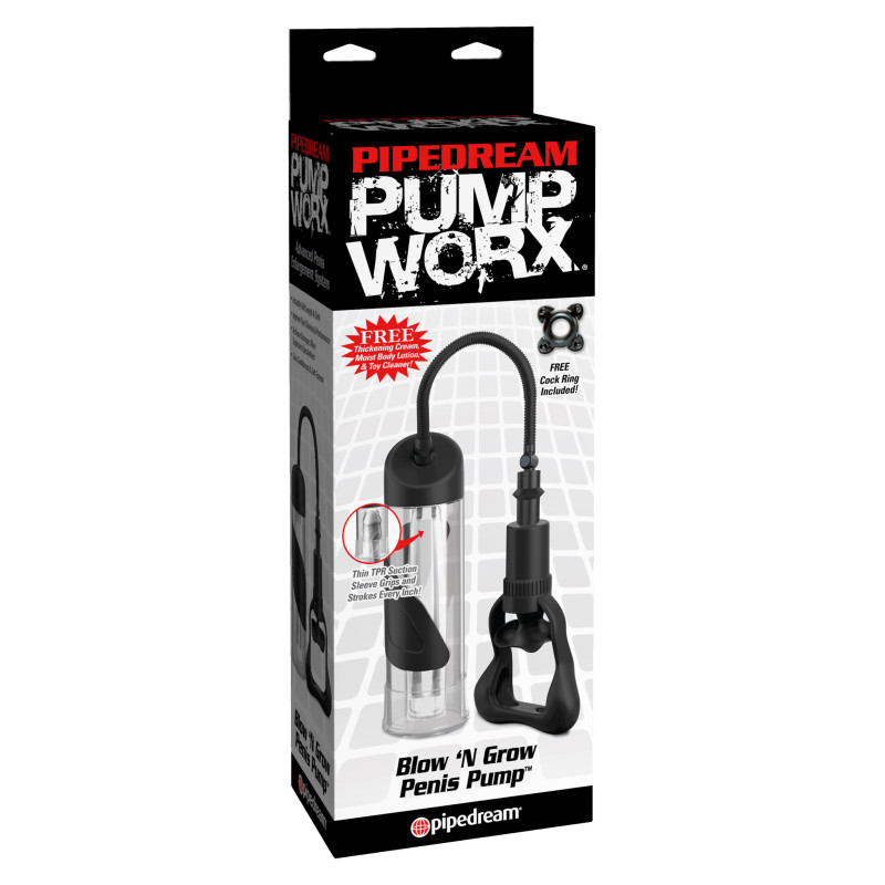Ottenete le dimensioni e la sicurezza che avete sempre sognato guardando il vostro cazzo crescere più grande e più spesso che mai! Circondando l'intera asta con un'aspirazione diretta, la pompa per pene Blow 'N Grow si sente proprio come un vero pompino - solo meglio! Il manicotto di piacere in TPR supermorbido si avvolge intorno a voi, aderendo all'intero cazzo per creare un vuoto superforte che produce i massimi risultati. Ad ogni pressione del grilletto della pompa EZ-Grip, Blow 'N Grow Penis Pump crea un'aspirazione simile a quella di un pompino e garantisce erezioni durissime che durano nel tempo. La guaina di aspirazione super-aderente aggiunge una nuova dimensione alle pompe per il pene, rendendola la pompa per i preliminari ideale per prepararsi all'azione. Una volta penetrati nell'apertura liscia e flessibile in PVC, scoprirete rapidamente erezioni palpitanti e dure come la roccia, che si sentono benissimo senza delusioni a metà strada! Il morbido PVC forma una tenuta perfetta contro la pelle e crea un potente vuoto all'interno della camera, costringendo l'erezione a espandersi rapidamente in lunghezza e circonferenza. Il tubo di aspirazione trasparente consente di osservare la crescita del vostro cazzo, mentre l'impugnatura liscia e antiscivolo offre una comoda maneggevolezza. Per prolungare l'eiaculazione, fate scorrere l'anello di potenziamento incluso sull'asta fino a quando non è ben aderente. Per prolungare l'eiaculazione, è sufficiente far scorrere l'anello di potenziamento incluso sull'asta fino a renderlo ben aderente, in modo da prolungare l'eiaculazione, mantenere l'erezione e prolungare il divertimento.Quando si è finito, è sufficiente staccare il cilindro dal tubo di aspirazione e riportarlo come nuovo con un detergente per giocattoli e acqua calda.