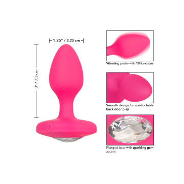 Cheeky Gem Medium Rechargeable Vibrating Probe è una sonda in silicone abbagliante e flessibile, creata sia per i principianti che per gli esperti di toy. Il design ergonomico e il potente motore vibrante consentono a questa sonda di fornire vibrazioni intense. L'accento gemmato aggiunge un tocco di brillantezza a qualsiasi avventura backdoor. Per assicurarvi tutto ciò che l'esaltante mondo del gioco anale ha da offrire, abbiamo creato una sonda delicatamente affusolata per il massimo del comfort e della stimolazione. La forma flessibile e la base flangiata consentono un facile inserimento e rimozione, mentre l'intenso motore vi farà rabbrividire di piacere. Concedetevi un piacere personalizzato mentre l'elegante sonda pulsa con 10 vivaci funzioni di vibrazione, pulsazione ed escalation. Controllate questa varietà di opzioni orgasmiche con il pulsante in silicone facile da toccare. Portate il vostro piacere in viaggio ed evitate accensioni accidentali con la funzione di sicurezza del blocco da viaggio. Che si tratti di un'immersione con l'amante o di una vaporosa sessione in solitaria, il piacere è assicurato da un massimo di 90 minuti di vibrazioni impermeabili. Ricaricate il piacere e tornate a giocare in sole 2 ore con il cavo USB in dotazione.