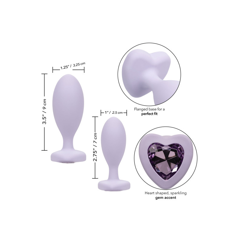 Assecondate le vostre fantasie più cattive e apritevi a un eccitante gioco anale con il First Time Crystal Booty Duo. Questo kit pronto per il gioco comprende 2 plug anali graduati con base in cristallo a cuore, sonda dal design sinuoso e corpo in silicone morbido. Per godere di tutto ciò che l'esaltante mondo del gioco anale ha da offrire, è necessario un addestramento per garantire la totale sicurezza e soddisfazione. Ogni sonda del nostro kit aumenta gradualmente in lunghezza e circonferenza per un piacere superbo a qualsiasi livello di gioco anale. Mentre ogni aumento dell'allenamento espande i vostri orizzonti, innamoratevi della scintillante base ornata di gemme a cuore per una stimolazione vaporosa, un inserimento senza sforzo e una rimozione delicata. Le sonde flessibili sono realizzate in silicone liscio e senza cuciture. Questo materiale sicuro per il corpo non è profumato e non contiene ftalati, per rendere felici e sani i vostri punti più sensibili.