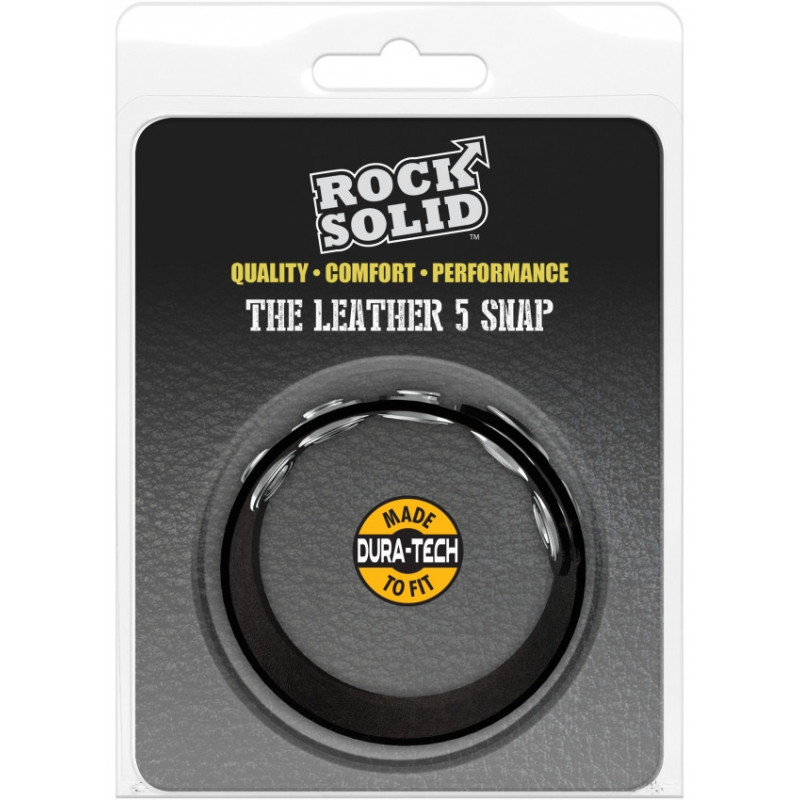 Il cock ring Leather 5 Snap è realizzato in vera pelle bovina. Con tre opzioni di scatto, può adattarsi alla maggior parte degli anatomici con facilità. I bottoni a pressione in nichel sono forti ma facili da sganciare. Gli anelli per cazzo Rock Solid aumentano le dimensioni e lo spessore per erezioni più lunghe e dure e sono completamente sicuri per il corpo.