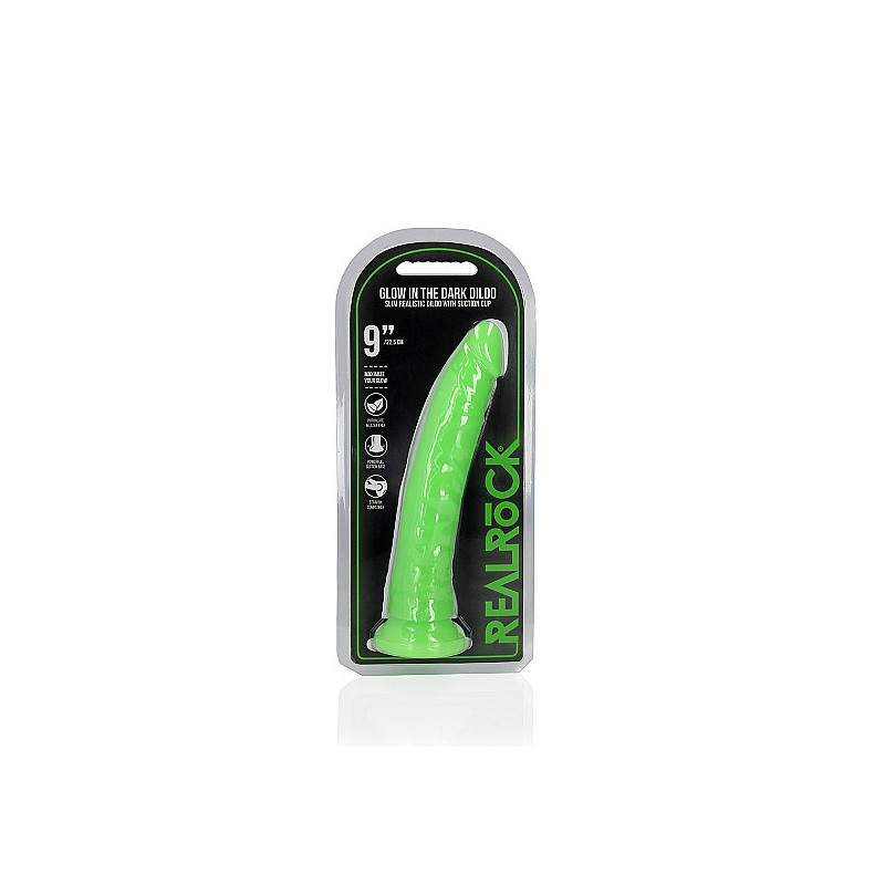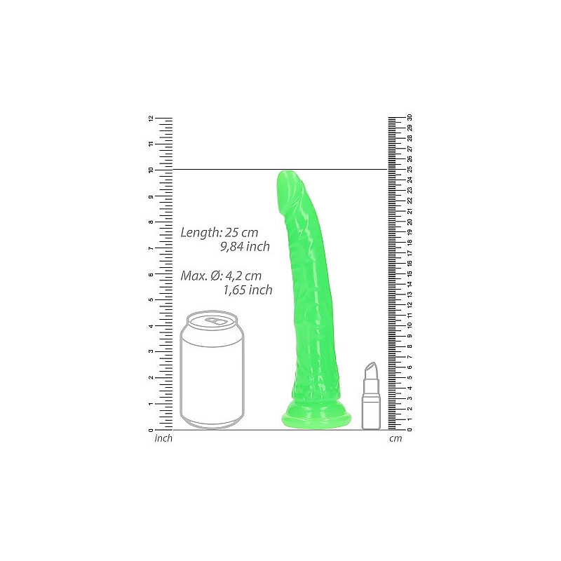 Fallo realistico vaginale anale Slim Dildo Suction Cup GitD 22,5 cm Neon Green