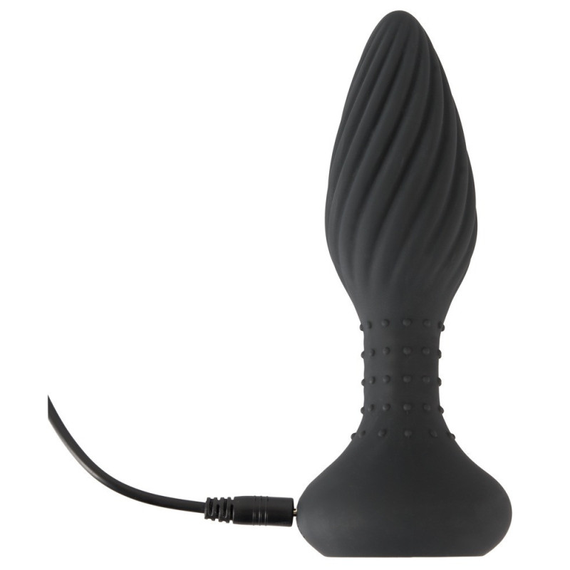 Plug anale Vibro Plug anale a perline rotanti testurizzate di ANOS con un caratteristico design a spirale per un intenso massaggio anale. Le palline rotanti per il massaggio nell'asta inferiore borchiata stimolano l'ano in modo mirato. Sotto la base con un piccolo specchio rotondo color oro che decora l'ano mentre si indossa il plug.