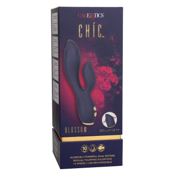 Sofisticato, sofisticato e potente, lo Chíc Blossom è fatto per guidarti verso un piacere lussuoso. Il doppio stimolatore flessibile combina potenti motori doppi, 10 velocità di vibrazione e un incredibile stimolatore del punto G martellante. Abbraccia la sconvolgente stimolazione del punto G come non hai mai sperimentato prima con la punta dello stimolatore G e le intense pulsazioni martellanti. Questo potente massaggiatore è realizzato con un'asta curva e un massaggiatore di forma naturale per abbracciare le tue curve più intime. Un motore intenso nell'albero flessibile e un altro nel teaser forniscono vibrazioni rumorose per una stimolazione giocosamente potente.