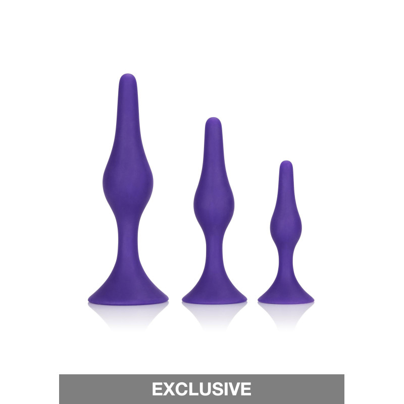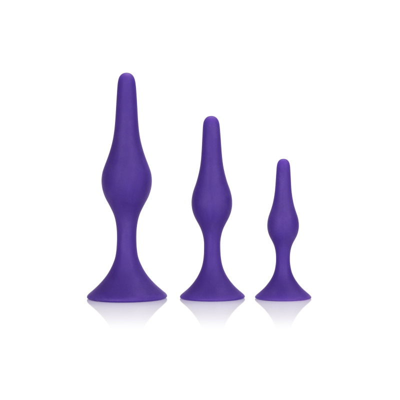 Che tu sia una timida principiante o un'esperta di erotismo, il Booty Call Booty Trainer Kit di CalExotic diventerà il tuo giocattolo di allenamento anale preferito. Ogni sonda elegante offre un piacere snello dal corpo liscio e flessibile che scivola comodamente all'interno per una stuzzicante stimolazione erotica. Ogni sonda nel nostro kit aumenta gradualmente in lunghezza e circonferenza per un piacere superbo a qualsiasi livello di piacere. Usa la base flangiata con una robusta ventosa per controllare facilmente l'inserimento, la stimolazione e la rimozione sicura e delicata o monta su una superficie piana per un divertimento senza mani. Non importa come o dove lo usi, il nostro kit di giocattoli sessuali anali è qui per la tua prossima esperienza X-rated. Il kit è completo di piccoli giocattoli anali per principianti e di grandi giocattoli anali più avanzati. Basta sedersi, rilassarsi e godersi questo Booty Call!