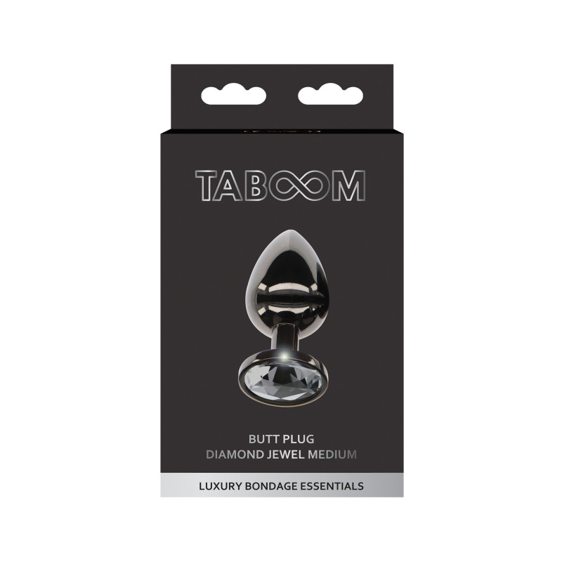 Fai brillare il tuo sedere con TABOOM Butt Plug With Diamond Jewel M. Questo plug anale di alta qualità è realizzato in alluminio leggero e liscio con un accento di finta pietra preziosa nera. È il plug perfetto per aggiungere glamour alle tue avventure anali.