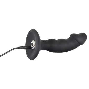 Per uomini e donne che vogliono stimolare il loro punto P! Molto adatto anche per il piacere vaginale. Tappo anale vibro curvo, leggermente curvabile, con glande indicato, albero e base ondulata. Facilmente piegabile. 7 modalità di vibrazione. Ricaricabile con cavo USB incluso. Nero. Lunghezza totale 14 cm, Ø 3,2 cm. Silicone con rivestimento in PU.
