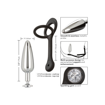 Informazioni aggiuntive : Potenziatore in silicone elastico e resistente con sonda metallica sottile, liscia e senza cuciture, Design multiuso per un sostegno e un potenziamento personalizzato, Il plug e l'enhancer in metallo si smontano per una facile pulizia,Il metallo trattiene il calore o il freddo per giocare con la temperatura, Accento di gemme scintillanti, Non si appanna e non contiene nichel.
