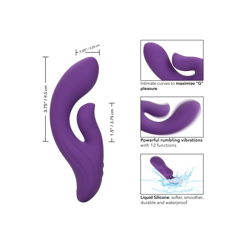 Informazioni aggiuntive : Massaggiatore doppio premium con curve intime per massimizzare il piacere "G", Flessibile con potenti vibrazioni rimbombanti e doppio motore, Silicone liquido: più morbido, liscio, resistente e impermeabile, Il chip di memoria all'avanguardia riprende dall'ultima funzione utilizzata, Funzione di sicurezza per il blocco del viaggio: tenere premuto per 3 secondi per accendere o spegnere l'apparecchio, Ricaricabile via USB - cavo di ricarica incluso, Carica completa in 2 ore, Funziona per 60 minuti ad alta velocità e 110 minuti a bassa velocità.