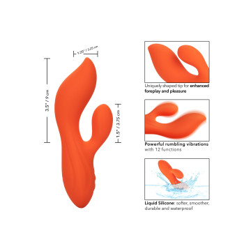 Con lo stupendo Stella Liquid Silicone Dual Teaser rimarrete senza fiato al solo tocco di un pulsante. Questo vibratore doppio intimamente sagomato è tanto eccitante quanto versatile, grazie alla punta dalla forma unica, ai doppi motori e alle 12 funzioni di vibrazione. La punta accentuata dello stimolatore G e le intense pulsazioni del doppio motore consentono una stimolazione del punto G mai provata prima. Questo massaggiatore doppio ad alta potenza è stato creato con un fusto curvo a G e uno stimolatore naturalmente sagomato per abbracciare le vostre curve più intime. Un motore intenso all'interno dell'asta flessibile e un altro all'interno dello stimolatore forniscono vibrazioni rimbombanti per una stimolazione giocosamente potente. Concedetevi un piacere personalizzato mentre l'albero curvo e il teaser si muovono al ritmo di 12 funzioni di vibrazione. Controllate questa varietà di opzioni orgasmiche con il pulsante di controllo facile da toccare. Il massaggiatore flessibile è realizzato in silicone liquido igienicamente superiore per una sensazione più morbida, liscia, durevole e flessibile. Che si tratti di un'immersione con l'amante o di una sessione di vapore in solitaria, potrete godervi fino a 110 minuti di vibrazioni impermeabili. Ricaricate il piacere e tornate a giocare in sole 2 ore con il cavo USB in dotazione. Per portare il piacere in viaggio, la funzione di sicurezza del blocco da viaggio richiede di tenere premuto il pulsante di accensione/spegnimento per 3 secondi per accendere o spegnere il dispositivo.