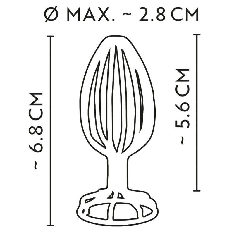 Un calcio eccitante per gli analisti! Il butt plug Metal Cage Ø 2,8 cm di ANOS, in un sofisticato design cavo, non solo offre una grande stimolazione anale e uno stiramento delicato, ma anche eccitanti viste e intuizioni sui glutei. La sua grande base offre la giusta visuale e una manipolazione sicura senza scivolare - così è possibile anche un piacere duraturo da indossare. La spina elegante e liscia è fatta di acciaio inossidabile lucidato di alta qualità ed è perfetta per i giochi di temperatura: Basta metterlo in frigorifero per raffreddarlo o in un bagno d'acqua per riscaldarlo. Lunghezza totale 6,8 cm, lunghezza d'inserimento 5,6 cm, Ø 2,8 cm. Peso 27 g. Acciaio inossidabile.
