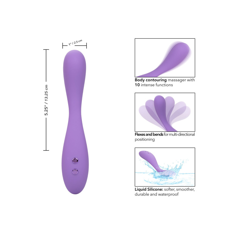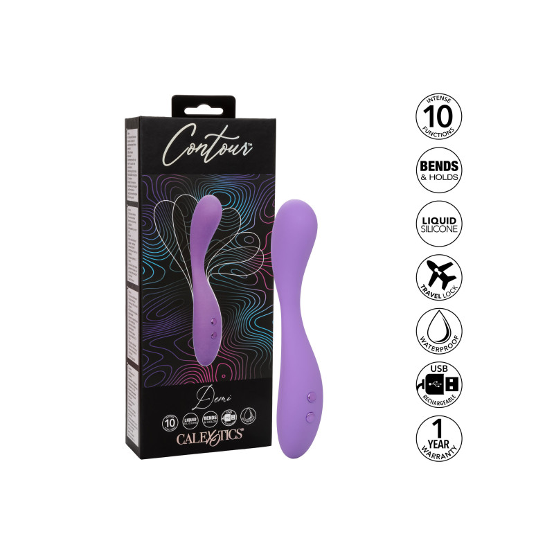Raggiungete nuove vette di piacere con il fantastico e flessibile Contour Demi. L'elegante massaggiatore è realizzato in morbido silicone liquido con 10 funzioni di vibrazione e corpo multidirezionale per stuzzicare il punto giusto. Dalle docce in solitaria ai momenti più piccanti nella vasca da bagno, giocate con la superficie impermeabile e le 10 funzioni di vibrazione estremamente potenti. Il comando a 2 pulsanti, facile da toccare, consente di selezionare le impostazioni di vibrazione. Il pulsante controlla l'intensità e la vibrazione offre la stimolazione desiderata, mentre il corpo flessibile consente di assumere qualsiasi posizione. Ricarica il massaggiatore in silicone premium in 2,5 ore con il cavo di ricarica USB in dotazione per godere di 40 minuti di stimolazione ad alta velocità o 90 minuti di vibrazioni a bassa velocità. Il design in silicone liquido premium è morbido, liscio, resistente e impermeabile.