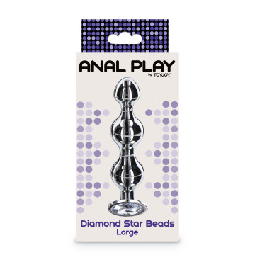 Il Diamond Star Beads è un butt plug di qualità con un gioiello d'argento alla base, che fa brillare la vostra porta posteriore! Questo elegante plug anale è caratterizzato da un'incredibile stimolazione grazie a 3 perle anali di dimensioni crescenti e alla base svasata, impreziosita da un gioiello. Realizzato in alluminio, il Diamond Star Beads è liscio e completamente sicuro per il corpo. Un must della collezione Anal Play di TOYJOY. È il plug unisex perfetto per aggiungere un tocco glamour alle vostre avventure anali.