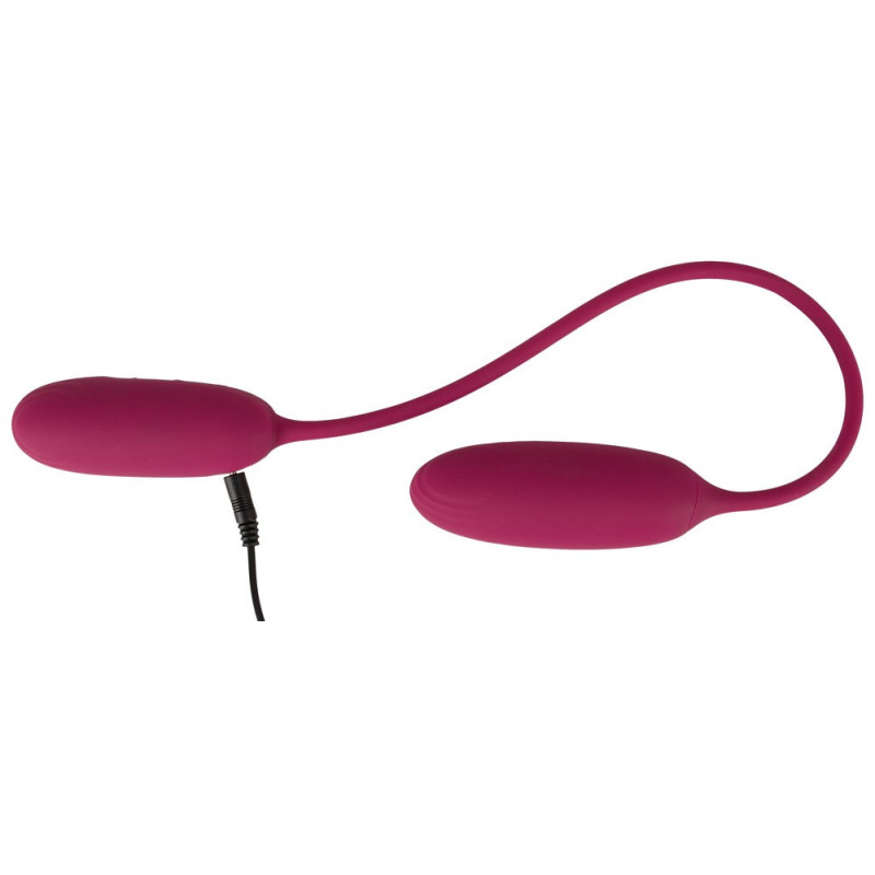 Vibrazioni profonde e impulsi scuotenti - da soli o in coppia! L'RC Shaking & Vibrating Love Egg Duo di Sweet Smile sorprende con 2 potenti proiettili collegati da una cinghia in silicone flessibile lunga 31 cm. Un proiettile trema e pulsa, l'altro vibra. In questo modo la stimolazione simultanea vaginale/anale o esterna/interna è comodamente possibile durante il gioco in solitaria, così come la sofisticata doppia stimolazione quando si gioca in coppia.
