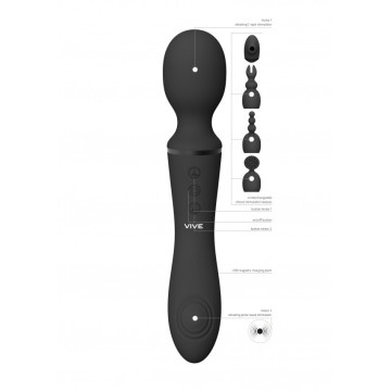 NAMI è una nuova svolta del nostro massaggiatore wand VIVE019 doppio.Con due motori F1 di Nuova Generazione con 10 funzioni e le sue tecnologie avanzate (i due motori possono essere controllati in modo indipendente).Un innovativo motore Pulse-Wave NG F1 con 10 funzioni per il punto G, un motore vibrante NG F1 con 10 funzioni per la stimolazione del clitoride (massaggiatore wand).Inoltre, il VIVE39 viene fornito con quattro accessori per aumentare il tuo divertimento. Tre utilizzati con la testina del wand per la stimolazione clitoridea diretta e uno da utilizzare con il motore base Pulse-Wave per punto G per creare una tecnologia Touchless Air-Waves che stimola il tuo clitoride attraverso la suzione.Combina le 100 diverse impostazioni possibili con i due motori F1 di Nuova Generazione con 10 funzioni, più tutti gli accessori extra e il divertimento sarà infinito. Realizzato al 100% in silicone di grado medicale liscio come la seta (ipoallergenico), è totalmente impermeabile (IPX7) ed estremamente silenzioso, essendo sotto i 60 dB.Ciò significa che puoi usarlo ovunque il tuo cuore desideri!Contiene una batteria agli ioni di litio ricaricabile USB magnetica.Quando viene ricaricato con il cavo USB incluso, fornirà 40 minuti di divertimento passionale.Basta collegare, caricare e giocare! Tutti i vibratori VIVE hanno una garanzia completa di 1 anno per proteggere il tuo investimento.