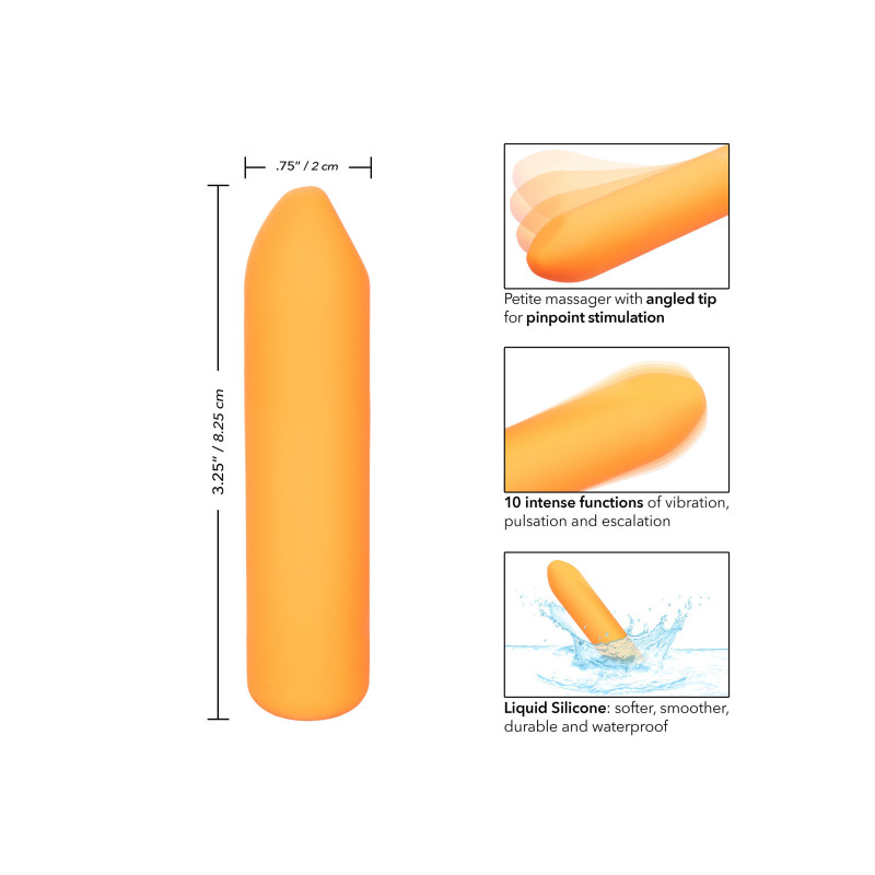 Non importa dove vi portino i vostri viaggi, godetevi un po' di "tempo per me" con il mini massaggiatore Kyst Fling. Il potente mini bullet in silicone liquido è dotato di 10 funzioni di vibrazione, chip di memoria e corpo flessibile. Il mini massaggiatore si inserisce tra le vostre dita per permettervi di stuzzicarle in modo mirato e di eccitarvi con vibrazioni rimbombanti. Giocate con le 10 funzioni di vibrazione, pulsazione ed escalation con il pulsante di controllo easy-touch. Il silicone liquido ultra morbido e il corpo eccezionalmente flessibile sono perfetti per esplorare con facilità i punti più dolci e intimi del piacere. Con una forma liscia e una superficie morbida, sarete in grado di abbandonarvi a vibrazioni eccitanti da qualsiasi angolazione desideriate. Caricate la vostra passione in appena 1,5 ore collegando il cavo USB in dotazione alla porta di ricarica autosigillante sulla base del massaggiatore. Per ogni ricarica, il massaggiatore offre fino a 110 minuti di vibrazioni. Le dimensioni discrete di questo massaggiatore lo rendono un perfetto compagno di viaggio, che vi permetterà di irradiare piacere ovunque vi portino le vostre fantasie.