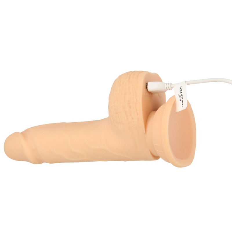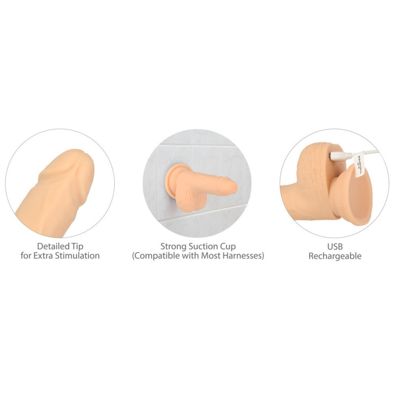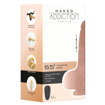 Dildo flessibile Thrusting Dong RC da 6,5" di Naked Addiction con aspetto di pene realistico con sottili venature e glande rigonfio. Con base di aspirazione sotto i testicoli grippanti, che aderisce saldamente e in modo sicuro a qualsiasi superficie liscia, consentendo così il piacere a mani libere. Il dildo shock è compatibile anche con strap-on e orinatoi.