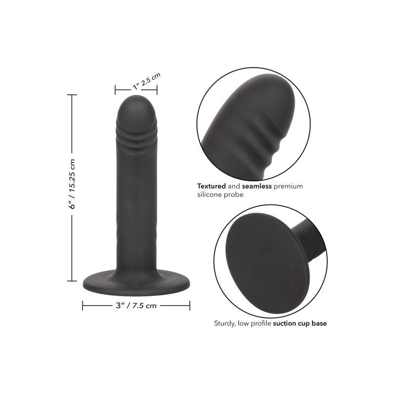 La sonda Boundless Smooth Probe da 6 pollici ti spingerà sicuramente nel mondo orgasmico della sensazionale stimolazione interna. L'asta perfettamente angolata, l'asta sensualmente increspata e la robusta base a ventosa ti consentono di fornire una stimolazione mirata ad ogni spinta. La sonda accentuata e l'asta rigida testurizzata sono create per stuzzicare perfettamente le curve intime e assecondare i punti dolci interni. Una potente base a ventosa è perfetta per il gioco di piacere creativo a mani libere, basta scivolare nella tua imbracatura preferita o montarla su una superficie piana per un divertimento malvagio. Il silicone premium ipoallergenico è sicuro per il corpo, inodore e privo di ftalati per mantenere i tuoi punti più sensibili felici e sani. per comfort e facilità d'uso