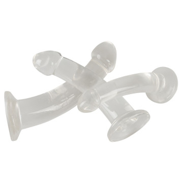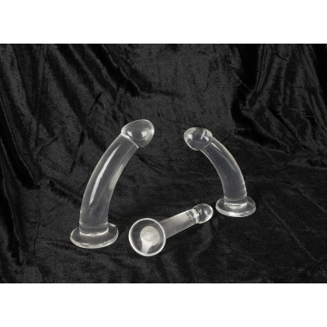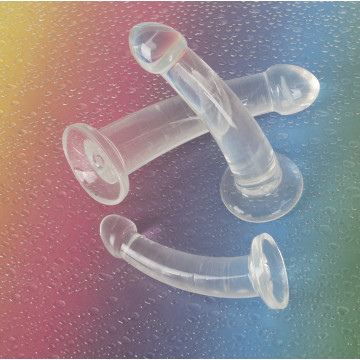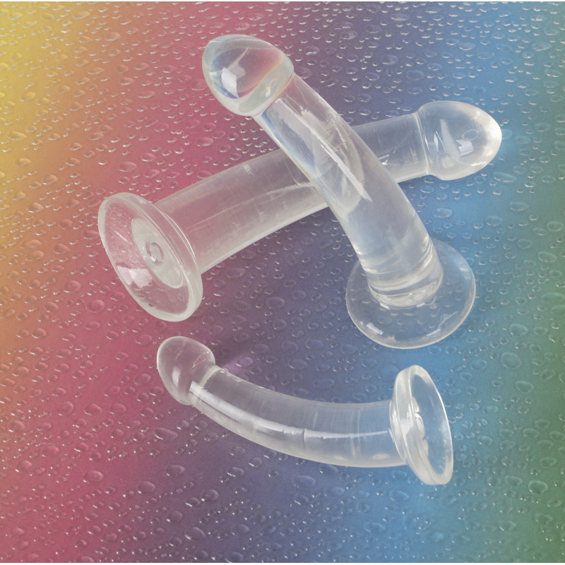 Ogni dildo trasparente è idealmente curvo ed enormemente flessibile, con glande pronunciato e forte base di aspirazione.