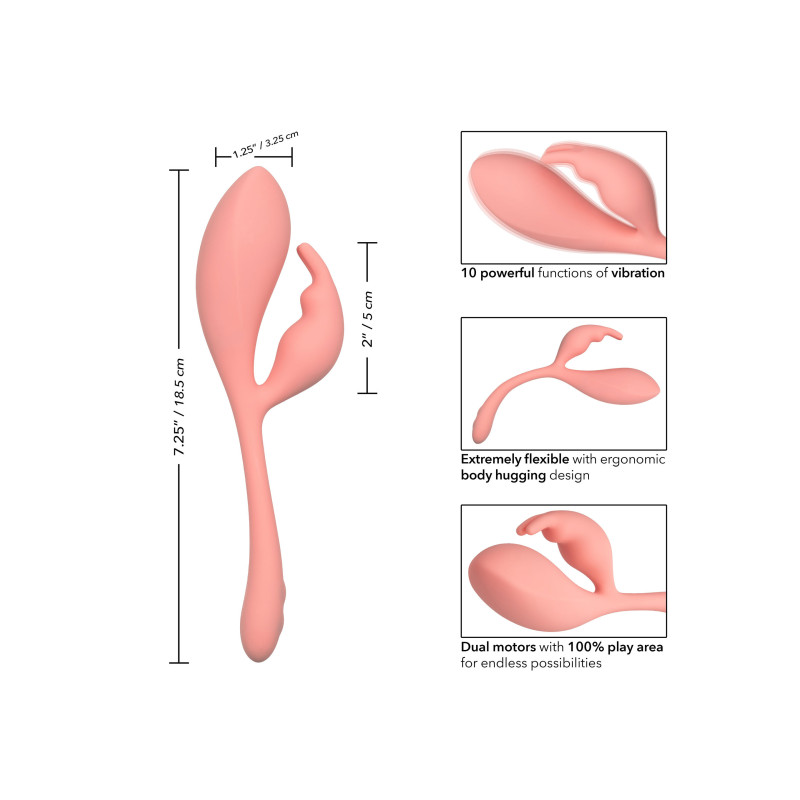 Lasciatevi andare a ondate di piacere mentre Elle Liquid Silicone Bunny vi muove in tutti i modi giusti. Il vibratore intimamente sagomato è tanto eccitante quanto versatile, con un corpo estremamente flessibile, un rabbit teaser guizzante e 10 indulgenti funzioni di vibrazione. Dalle docce in solitaria ai momenti più caldi nella vasca idromassaggio, lasciatevi coinvolgere dalla superficie impermeabile e dalle potenti funzioni di vibrazione. Il comando a 2 pulsanti, facile da toccare, consente di scorrere le impostazioni di vibrazione. Mentre i pulsanti easy touch controllano l'intensità e la vibrazione vi offre la stimolazione che desiderate, il corpo flessibile mantiene qualsiasi posizione desideriate. Ricarica il teaser in silicone premium in 2,5 ore con il cavo di ricarica USB in dotazione per goderti 35 minuti di stimolazione ad alta velocità o 90 minuti di vibrazioni a bassa velocità. Il silicone liquido premium è sicuro per il corpo, non profumato e privo di ftalati, più morbido, liscio e resistente del silicone tradizionale.