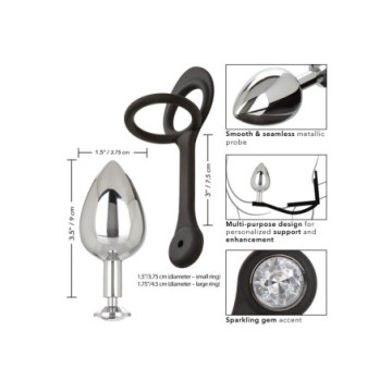 Informazioni aggiuntive : Potenziatore in silicone elastico e resistente con sonda metallica bulbosa XL liscia e senza cuciture, Design multifunzionale per un sostegno e un potenziamento personalizzato, Il plug e l'enhancer in metallo si smontano per una facile pulizia, Il metallo trattiene il calore o il freddo per giocare con la temperatura, Accento di gemme scintillanti, Non si appanna e non contiene nichel.