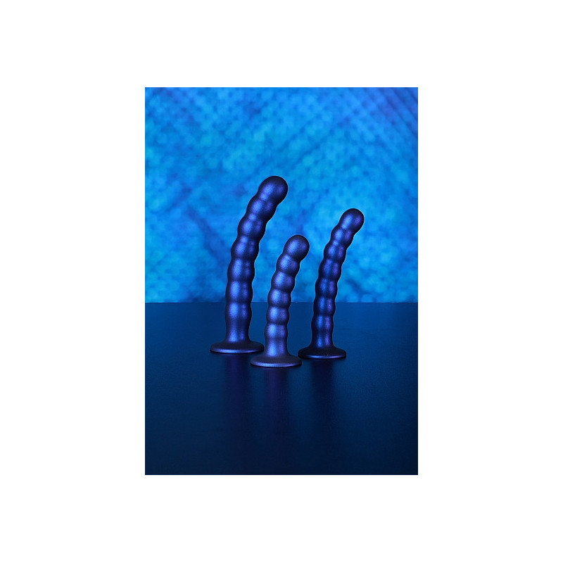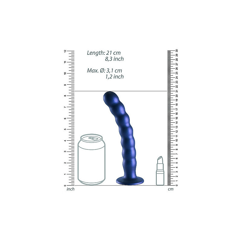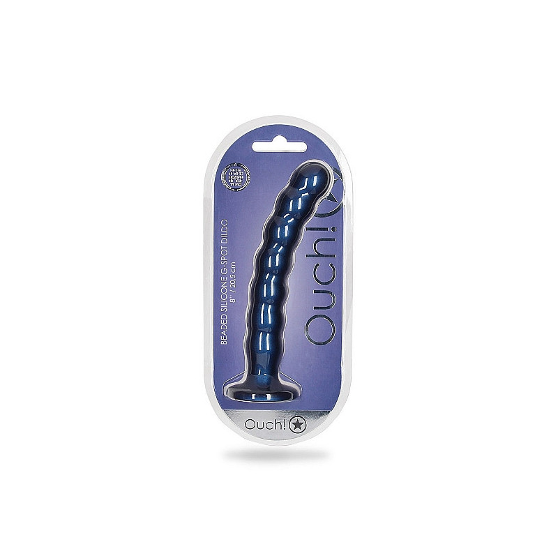 Il dildo in silicone per punto G con perline da 8" / 20,5 cm, con la sua forte ventosa e il bel colore metallico, è in una classe a sé stante. Che tu stia giocando da solo, con il tuo partner o addirittura usandolo con uno strap-on, esplora nuovi piaceri con questi bellissimi dildo in silicone premium e silicone liquido di Ouch! Si abbinano perfettamente alle mutandine Ouch Strap-on.