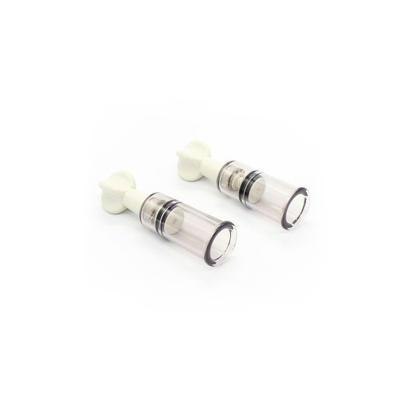 Cosa è? Uno stimolatore da posizionare sui capezzoli, per una stimolazione intensa e da graduare a proprio piacimento. Agendo sul pomello posizionato sul cilindro si può aumentare o rilasciare la pressione interna, ossia incrementare e diminuire il risucchio, in un saliscendi di piacere! A Cosa serve? I capezzoli sono una delle zone erogene chiave per entrambi i sessi e non vanno trascurati se si vuole godere di una vita sessuale piena e soddisfacente. Con Twist Suction di Toyz4Lovers otterrete una stimolazione che solo un sex toy fetish sa darvi. Portate il vostro partner a livelli estremi di eccitazione con questo sex toy, poi rimuovetelo e godetevi i suoi turgidi capezzoli! Come si usa? Posizionate gli stimolatori sui capezzoli e tirate delicatamente il pomello per azionare il pistone interno al cilindro e generare così un effetto risucchio. Spingete il pomello in senso inverso per rilasciare.