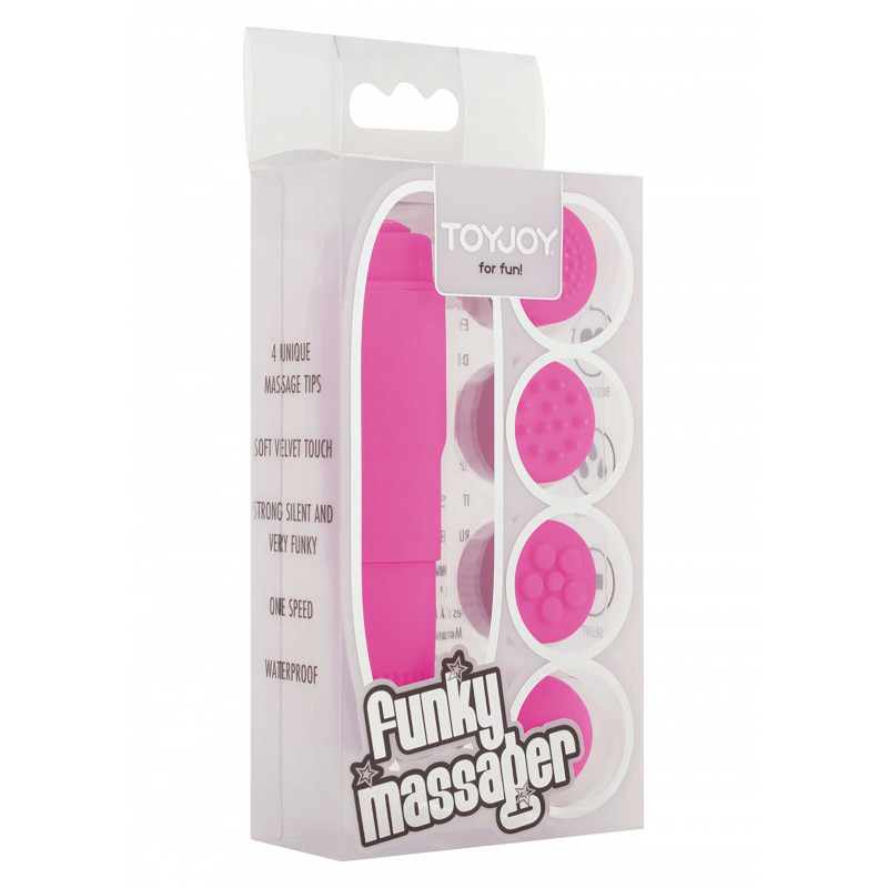 Massaggiatore Funky, prova questo fantastico stimolatore vaginale con ben 4 testine intercambiabili per farti vivere sensazioni uniche.
