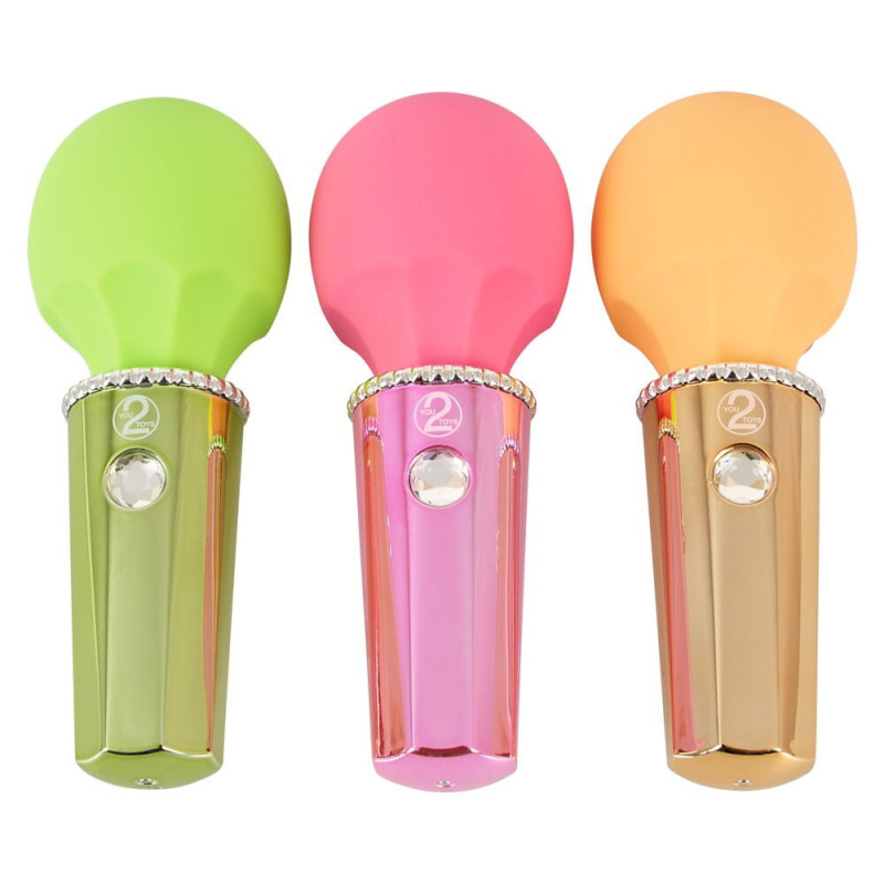 Un design glamour e fresco per sensazioni calde! Piccola e maneggevole bacchetta da massaggio Mini Wand Mango di You2Toys in un fresco e fruttato colore sorbetto e in un elegante look metallico con una scintillante pietra glitterata come pulsante di controllo. Con la sua testa flessibile e morbida come la seta, è adatta a massaggi prolungati e a stimolazioni precise. Un potente motore offre 10 modalità di vibrazione versatili con la semplice pressione di un pulsante. La vibrazione extra potente si sente intensamente nella testa del massaggiatore e non nell'impugnatura. La bacchetta compatta e leggera si adatta perfettamente alla mano ed è facile da guidare. Inoltre, grazie alle sue comode dimensioni, questo potente apparecchio entra discretamente in qualsiasi tasca, perfetto per i viaggi! Ricaricabile - cavo di ricarica USB incluso. Lunghezza totale 12,7 cm, testa massaggiante lunga 5,6 cm, Ø massimo 4,8 cm. Peso 110 g. Silicone, PU, ABS.