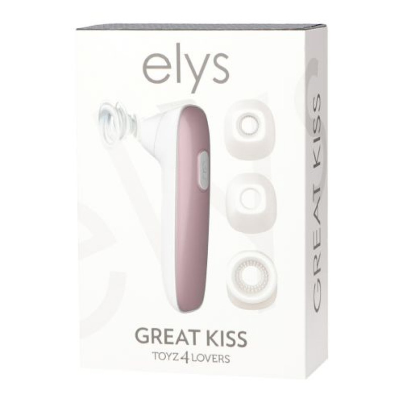 Great Kiss è uno stimolatore clitorideo simpatico, accattivante e compatto nelle dimensioni. La tecnologia ad onde di pressione provoca un effetto di aspirazione e stuzzica il clitoride senza nemmeno sfiorarlo, inoltre è possibile scegliere e cambiare la testina per stimolazioni sempre diverse. Il toy è realizzato in silicone medicale e Abs, è waterproof ed ha un motore silenzioso con 10 diverse intensità di suzione. Si ricarica attraverso cavo USB magnetico incluso. Le testine hanno diversi diametri: 1.3 cm, 1.6 cm e 2 cm.