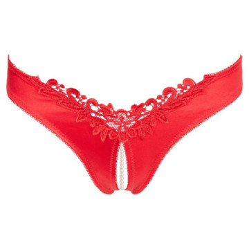 Sottoveste di seta ouvert con collana di perle stimolanti attraverso il cavallo. Realizzato in raso con un elaborato ricamo sul davanti.