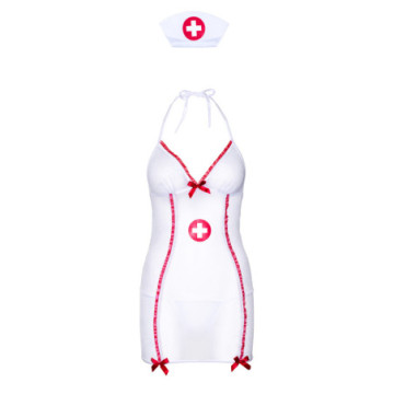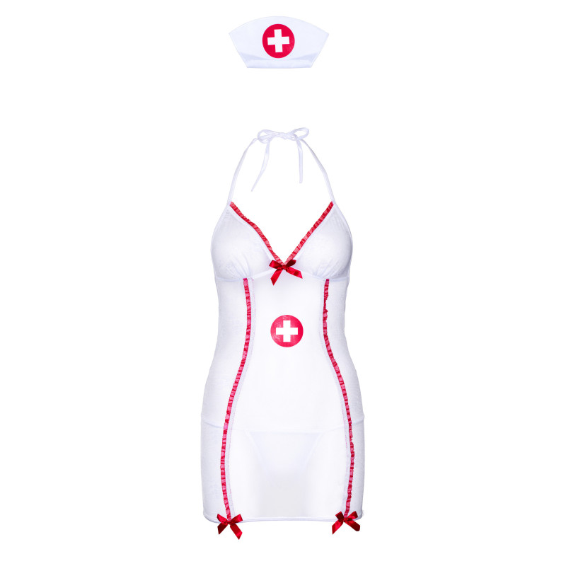 Set di giochi di ruolo da infermiera sexy - Set di giochi di ruolo da infermiera sexy, che include un miniabito con cavezza in pizzo e rete trasparente, una stringa coordinata, calze e un copricapo (forcine non incluse)