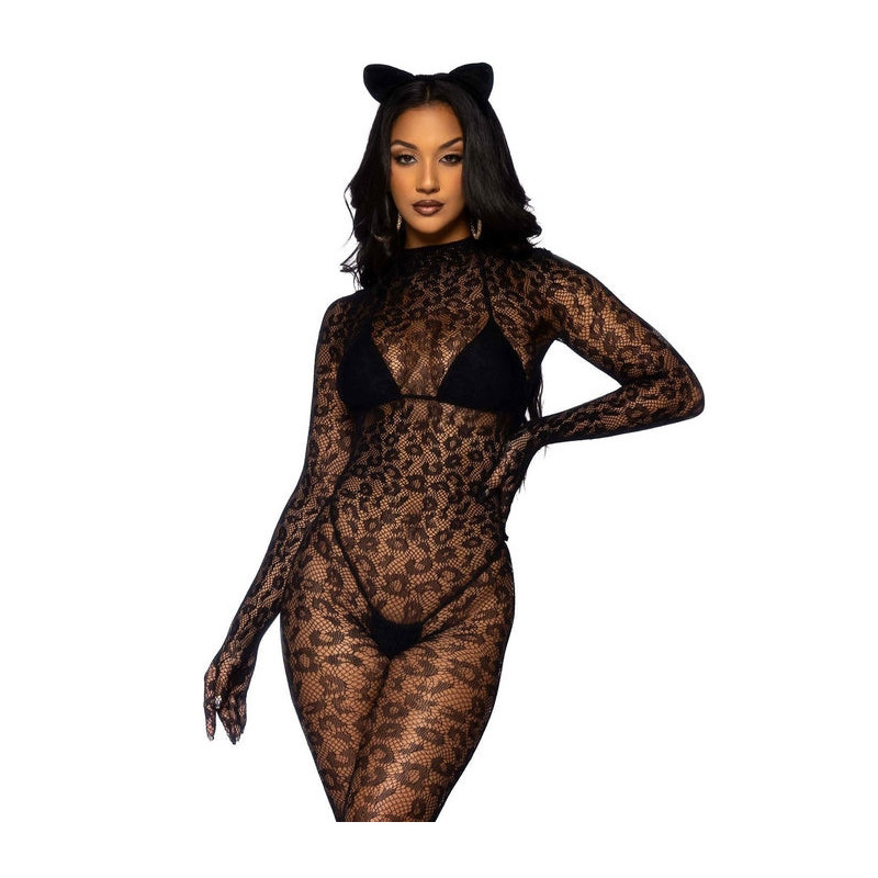 Scivola nella savana con questa tuta aderente con guanti a rete leopardati. Questa tuta aderente presenta una fantasia a rete leopardata, lunghe maniche con guanti e una schiena scoperta con apertura a serratura. Questa tuta nera è l'inizio di avventure selvagge. Puoi indossarla come costume per giochi di ruolo o come costume per Carnevale o Halloween.