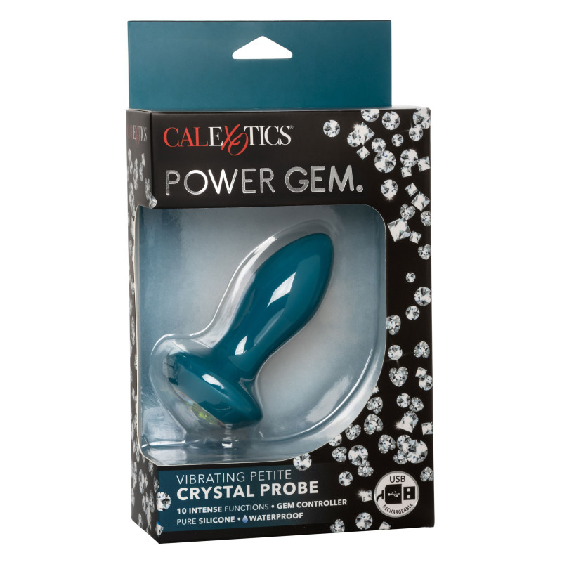 La sonda di cristallo vibrante Petite Power Gem® è una sonda in silicone abbagliante e flessibile creata per facilitare il piacere anale emozionante. Il design flessibile ed ergonomico e i potenti motori a vibrazione consentono a questa sonda di flettersi con i movimenti, offrendo al contempo vibrazioni intense. Concediti un piacere personalizzato mentre l'elegante sonda pulsa con 10 vibrazioni vivaci, pulsazioni appassionate ed escalation erotica. Controlla questa varietà di opzioni orgasmiche con il pulsante gemma di facile tocco