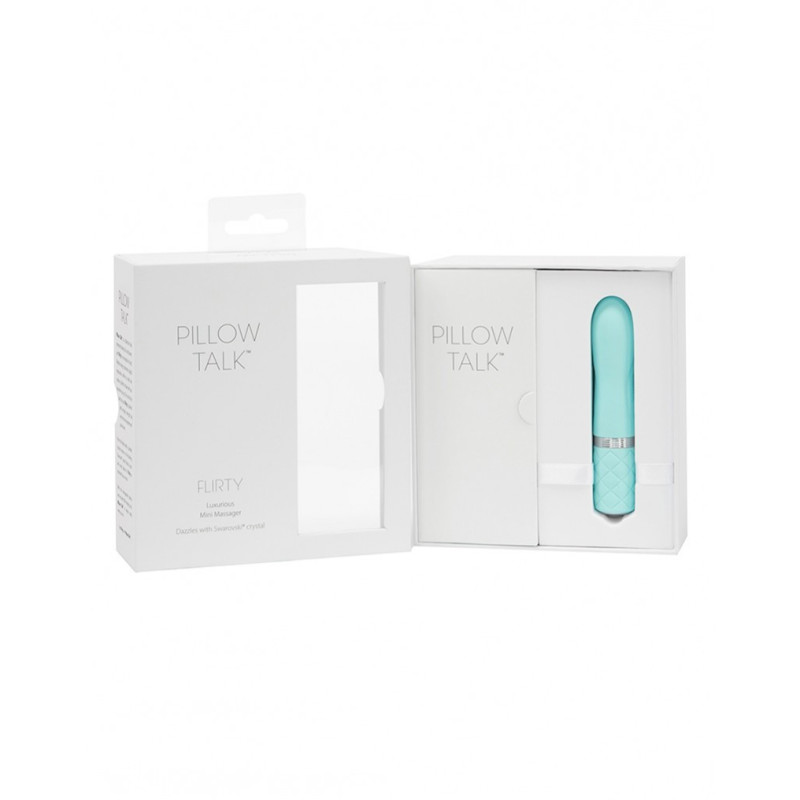 "Flirty" è abbastanza piccolo da stare nella borsetta, il che significa che può darti piacere quando sei in viaggio. Il vibratore ha un albero rettilineo con una punta leggermente arrotondata e scanalature stimolanti: è davvero un piacere puro. Scivola nella tua zona intima quasi da sola, grazie alla sua superficie vellutata e morbida. Una volta posizionato, puoi usare il pulsante nella parte inferiore dell'albero per lasciar sfogare la sua potenza. Tuttavia, questo pulsante non è un normale pulsante: è una vera pietra Swarovski che brilla splendidamente quando cattura la luce. Questo vibratore non ha solo un bell'aspetto, ma ha anche molto da offrire. "Flirty" ha un potente motore in grado di fornire vibrazioni profonde (con la semplice pressione di un pulsante) che ti catapulteranno in estasi. Premi il pulsante più a lungo per regolare le vibrazioni fino a trovare quella giusta per te. Il vibratore ha vibrazioni a più velocità e una funzione Quick-Off che lo spegne immediatamente. Ha anche un blocco da viaggio che impedisce che si accenda e quindi evita momenti imbarazzanti. Se il tuo nuovo amante rimane senza energia, puoi ricaricarlo facilmente con il cavo USB incluso: sarà pronto per il prossimo momento di piacere.Che cosa stai aspettando?!