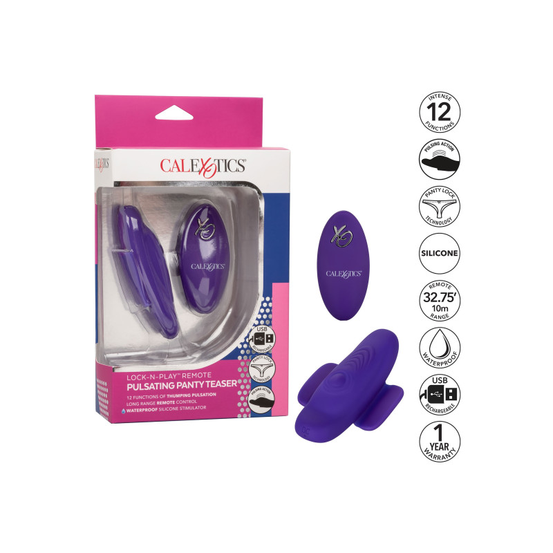 Il teaser per mutandine pulsante remoto Lock-N-Play ™ è un teaser per mutandine pulsante abbinato a un mini telecomando giocoso per avventurosi cercatori di piacere. Per mantenere il posizionamento perfetto anche durante i momenti di gioco più attivi, il teaser slip ha alette magnetiche per attaccarsi saldamente a quasi tutti i mutandine. Il telecomando discreto rende facile per te o il tuo amante controllare l'intensità della vibrazione con il semplice tocco di un pulsante