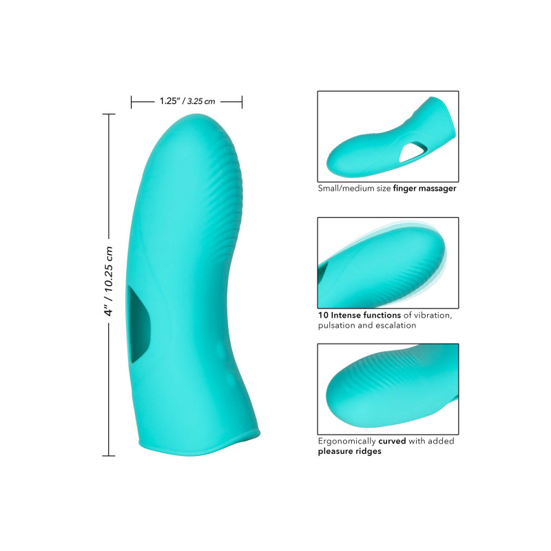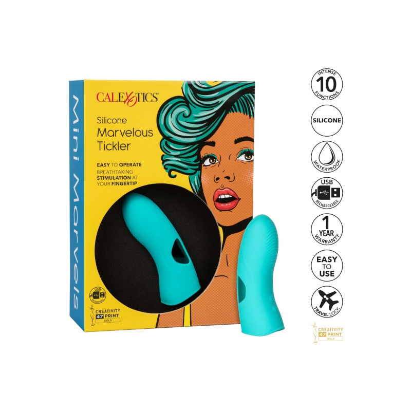 Il Mini Marvels Marvelous Tickler mette il piacere da far tremare le ginocchia a portata di mano! Il vibratore da dito totalmente autonomo è sicuro di emozionare con la stimolazione precisa e le vibrazioni a copertura totale. L'atmosfera delle dita di piccole e medie dimensioni soddisfa ogni tua fantasia con 10 funzioni di vibrazione e sensuali creste di piacere. La forma delle dita sagomata e il silicone ultra morbido sono realizzati per esplorare il punto debole e sensuale e individuare i desideri intimi con facilità. La superficie delicatamente scanalata e il corpo sagomato ti consentono di fornire vibrazioni elettrizzanti da qualsiasi angolazione desideri. Trova la tua impostazione preferita con il tocco di un pulsante mentre scorri tra 10 potenti funzioni di vibrazione, pulsazione ed escalation
