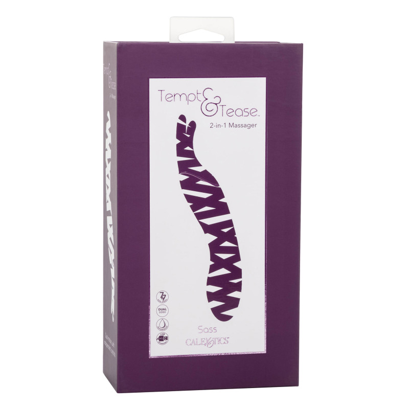 Il Tempt and Tease Sass è un massaggiatore a doppia faccia che sa esattamente cosa desideri. Senti l'aumento di calore con il doppio stimolatore con due punte distintive, due potenti motori e 7 funzioni di vibrazione controllate in modo indipendente. Con una forma versatile e due potenti motori a vibrazione a ciascuna estremità, raggiungerai nuove vette in un batter d'occhio. Solletica e stuzzica esternamente con i teaser tremolanti a punta lunga o immergiti in profondità nella stimolazione interna rumorosa con il lato G curvo. Scegli il tuo stile di piacere con due motori controllati indipendentemente su ciascuna estremità di questo massaggiatore a doppia faccia e non ti stancherai mai di questo massaggiatore sexy.