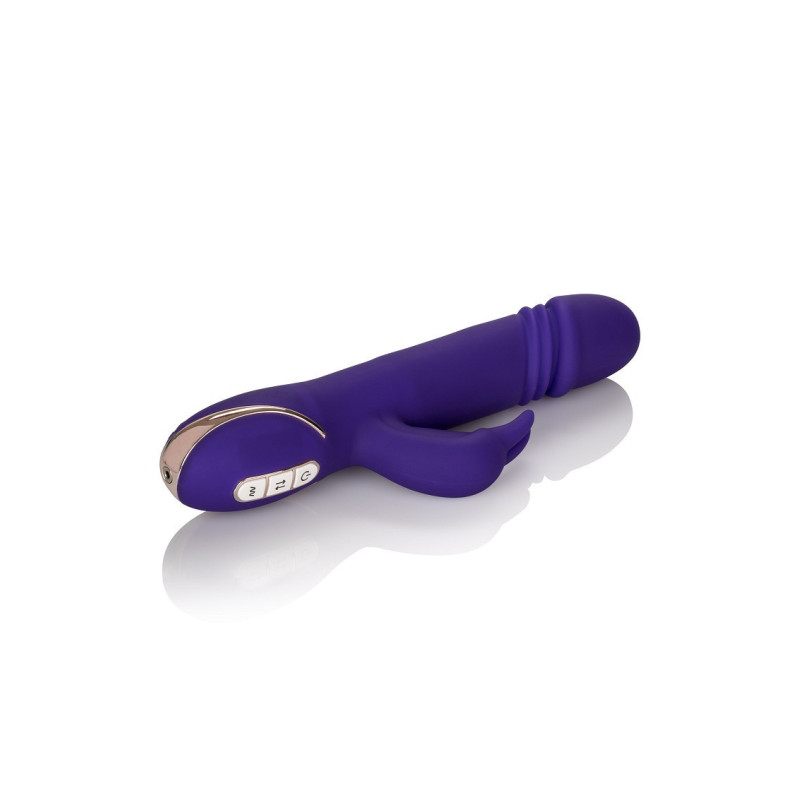 La lussuosa Jack Rabbit Signature Collection dà vita a fantasie eccitanti con il sensazionale sex toy vibrante in silicone Thrusting Rabbit per donne. Questo massaggiatore intimo, dal design accattivante, è dotato di 7 funzioni di vibrazione e di 3 velocità di spinta incredibili, per un'esperienza di piacere che durerà tutta la vita. Per massimizzare e personalizzare il vostro piacere, il pad di controllo a 3 pulsanti, facile da toccare, vi permette di gestire in modo indipendente le vibrazioni e le opzioni di spinta su e giù di questo sex toy femminile. Mentre lo stimolatore a coniglietto tremola, la punta liscia eccita i punti di piacere interni con 3 velocità di spinta. La punta di precisione per la spinta ha una potente azione su e giù per assicurarvi di colpire sempre il punto giusto. Le orecchie da coniglio e il naso svolazzanti di questo incantevole coniglio sono il vibratore clitorideo perfetto e offrono una stimolazione beata. Le vibrazioni teaser, morbide e flessibili, possono essere utilizzate indipendentemente dalla funzione di spinta per un'esperienza di piacere personalizzabile. La porta di ricarica autosigillante sulla base del massaggiatore consente di ricaricare la passione in 150 minuti. Utilizzate l'elegante tastierino di controllo a 3 pulsanti per selezionare oltre un'ora di appassionato gioco di piacere. Perché accontentarsi del resto quando potete avere il meglio; portate a casa il vostro Jack Rabbit personale da CalExotics!