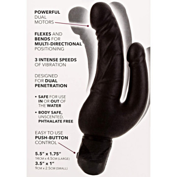 Vibratore fallo doppio dildo vaginale anale realistico nero . Un dolce alleato per le doppie penetrazioni , un fallo vibrante con doppio motore . Vibrazione a 3 modalità , flessibile , vibratore anale , vaginale boundie è resistente all'acqua .