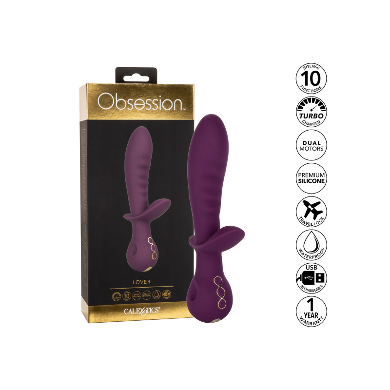 Il piacere decadente è a portata di mano con l'indulgente Obsession Lover. Il vibratore doppio turbo è in grado di soddisfare grazie al fusto strutturato e sensuale, al teaser strutturato e alle 10 potenti funzioni di vibrazione. Il massaggiatore ad alta potenza è stato creato con un design sensualmente curvo, con un teaser testurizzato e un fusto increspato.
