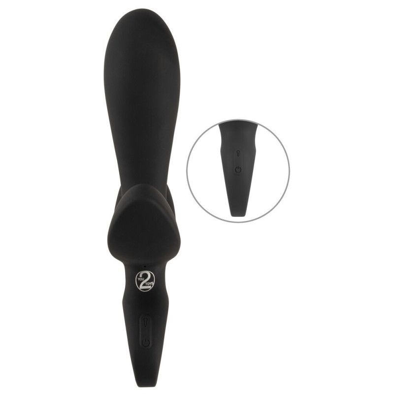 Coccole gonfiabili a tutto tondo! Il pratico vibratore gonfiabile triplo ETERNAL di You2Toys ha un aspetto elegante e una consistenza morbida al tatto. La punta vibrante e ispessita dell'asta rigida può essere gonfiata ancora di più! Per una sensazione completa e una stimolazione vaginale intensa e profonda. Allo stesso tempo, il clitoride e il perineo sono coccolati dalle vibrazioni delle due estensioni flessibili. 4 motori potenti e silenziosi forniscono 10 intense modalità di vibrazione nella punta rigonfia, nello stimolatore del clitoride e del perineo. Oltre alla funzione di pompa automatica (con rilascio della pressione). Le funzioni possono essere comodamente controllate premendo un pulsante sulla pratica impugnatura ad anello - separatamente o in un'eccitante combinazione. Ricaricabile - cavo di ricarica USB incluso. Lunghezza totale 18,9 cm, larghezza 12,5 cm, lunghezza di inserimento 10,4 cm, Ø 2,2 cm - 3,7 cm, pompabile fino a un Ø massimo di 4,7 cm. Peso 184 g. Silicone, PU, ABS.