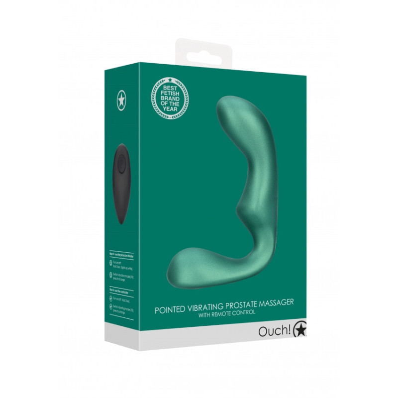 Sblocca un piacere intenso come mai prima d'ora con il massaggiatore prostatico vibrante a punta. Con la sua forma appuntita visionaria, questo vibratore in silicone verde metallizzato è progettato per stimolare il tuo punto P e provare sensazioni in tutto il corpo. Il telecomando consente a te o al tuo partner di navigare senza sforzo attraverso i 10 potenti modelli di vibrazione senza interrompere il gioco. Applicare il lubrificante per una scorrevolezza fluida. Che tu sia un principiante o un utente esperto, la varietà di forme e dimensioni disponibili soddisfa le diverse preferenze. Realizzato in silicone sicuro per il corpo e privo di ftalati. Preparati a sperimentare il potere dell'orgasmo prostatico con OUCH! Stimolatori della prostata.